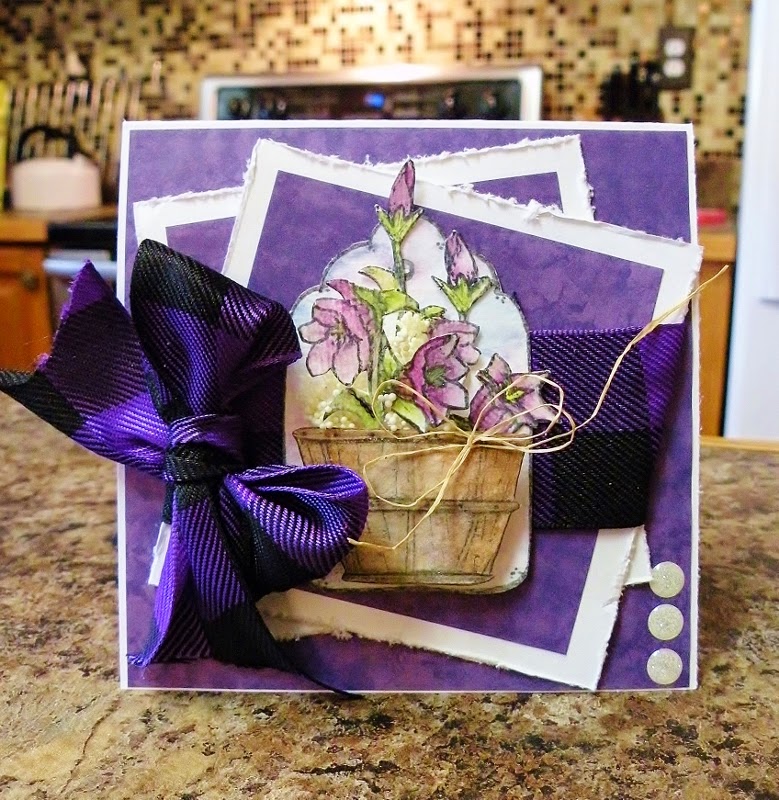 ReplyDeleteThis is just gorgeous Nancy! Oh my, the purple colors take my breath away, and that ribbon is to die for! Beautiful card!